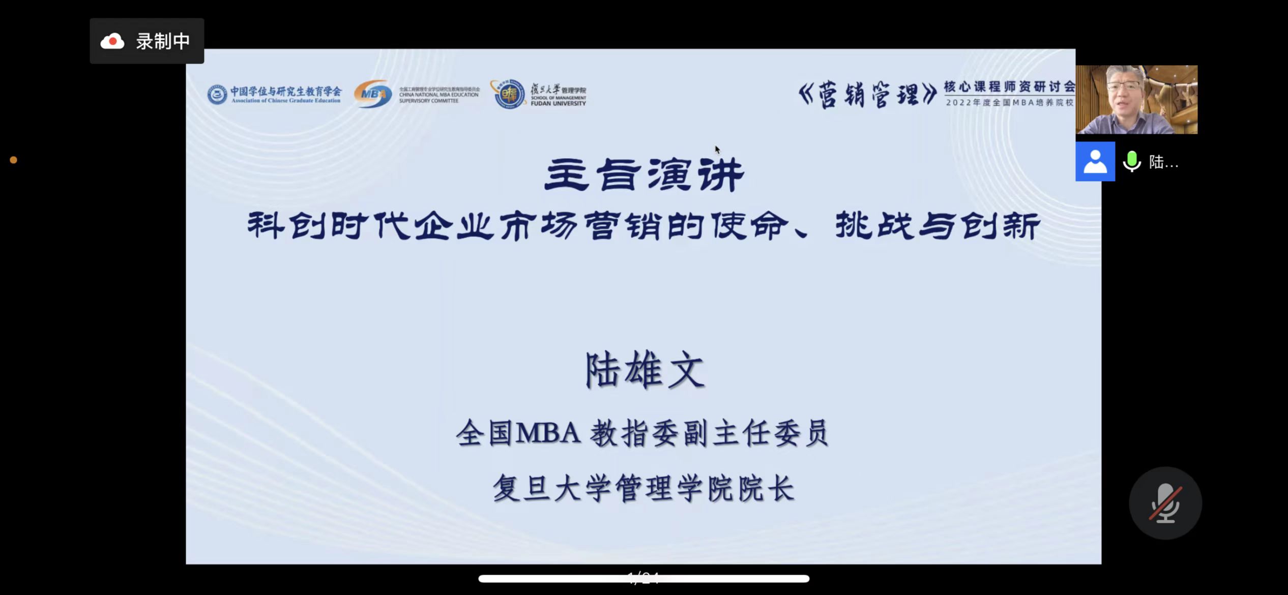 为提升公司教师的专课程教学能力,公司组织教师于8月27日通过腾讯会议线上参加由中国学位与研究生教育学会、全国工商管理专业学位研究生教育指导委员会、复旦大学管理公司共同举办的2022年度全国MBA培养院校《营销管理》核心课程团队研讨会。公司副经理叶敏、营销系主任黄志璿、营销系教师吴钰萍、林孟蓁、李秀梅等参加了本次培训。