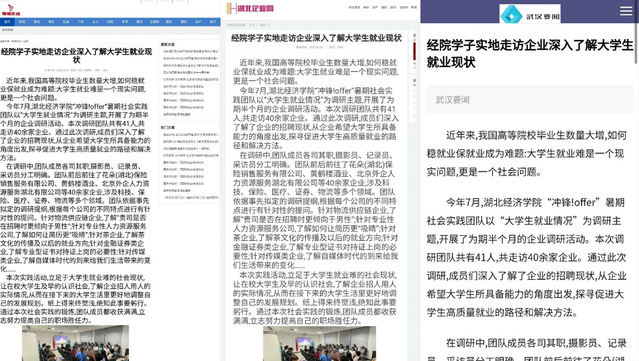 今年7月,公司“冲锋!offer”团队的暑期社会实践活动获得了湖北企业网、湖北之窗、鄂城在线、武汉日报网、武汉要闻等50多家媒体的报道。