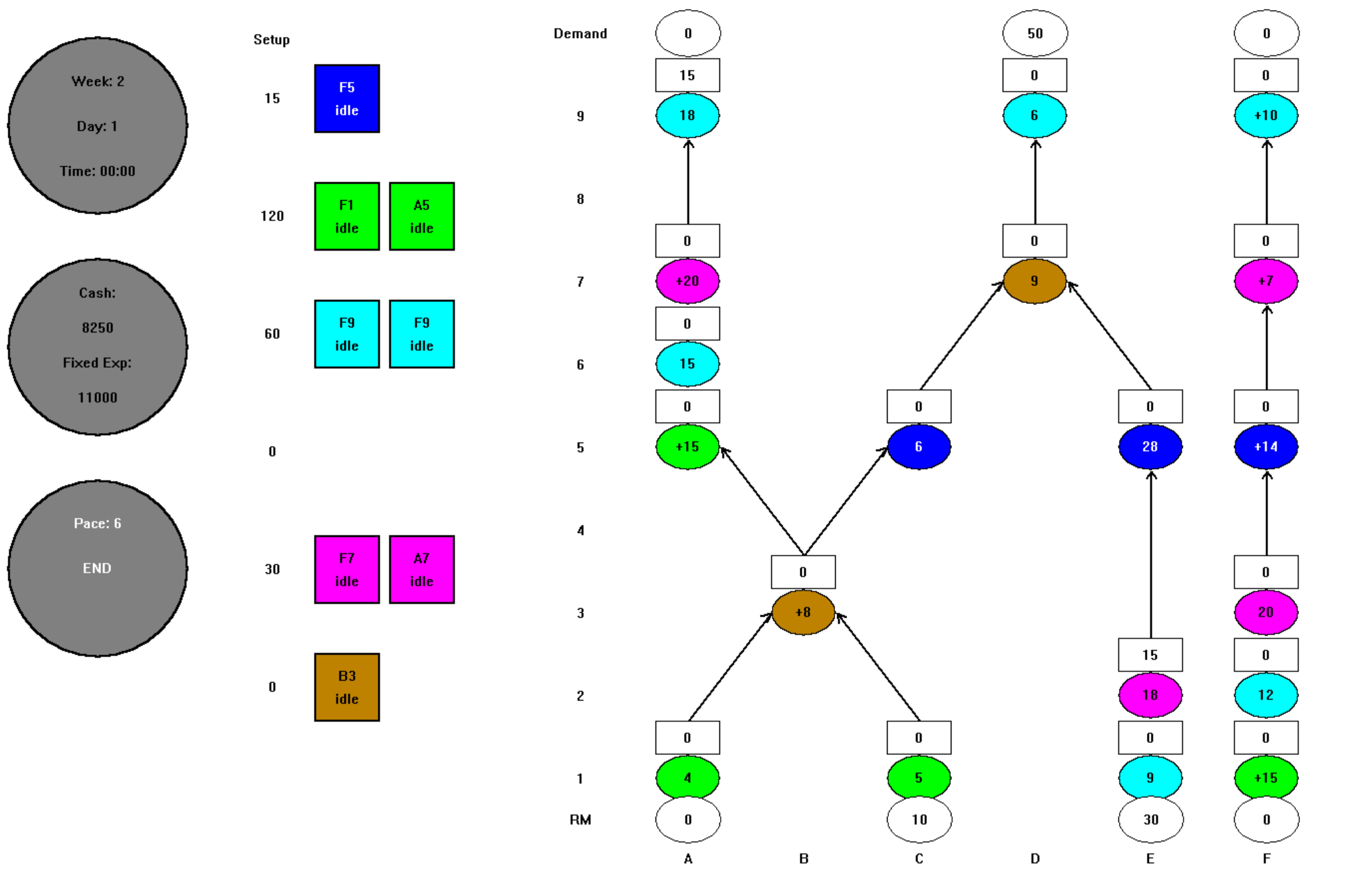 张盛鸿教授以“Production the TOC way”为题,从教学目标入手,围绕TOC基本理论、作业管理核心议题、生产管理解决方案、以模拟工厂熟练TOC等方向进行讲授。张盛鸿教授详细讲授Gsim的架构与指令,讲解工厂310及各项参数,通过Gsim运作范例,以一周五日、每日八小时、现金流量初期10000元、八机台等资源、规划生产三样产品。通过财务报表的相关指标包括净利、ROI、throughput、operating expenses等方面了解绩效,并分析resource utilization可以知道产品生产数量及set-up时间。在Gsim实际操过过程中,全体老师逐渐熟悉Gsim操作,梁洋洋及吴成峯老师对操作Gsim提出个人想法,冷凯君经理分享其操作并且更深入的点出瓶颈资源机台的重要性。张盛鸿教授详细解释为何完美工厂还是很难管理,整体过程让管理者可以观察出以下三大重点,客户订单没有准时出货、原始规划很快被打破、边生产边做决策到处救火。并且张盛鸿教授延伸Gsim行为模式体现效率症候群。张盛鸿教授说明了效率症候群是一个部门绩效与工厂绩效间的妥协现象,现实常见到工厂里如果一个作业员闲置了,那就找工作让他/她忙碌,让所有机台或作业人员保持最佳的使用状态,以使用率/效率做为绩效指标;另一方面,工厂需要满足客户订单,全部订单都要准时出货。张盛鸿教授指出,维持忙碌、管理者时时检讨使用率、无法忍受闲置等现象就像真实的工厂一样,然而在作业管理与供应链管理过程,批量以及必要的机台使用率的议题是让工厂整体绩效提升的关键之一。