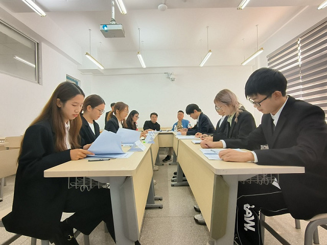 比赛主要包括背对背演讲,正式谈判,评委点评三个环节。谈判开始前,各队伍进行背对背演讲,介绍团队和策略。谈判过程中,选手们灵活运用各种策略与对方进行协商,充分向评委老师们展示了己方的风采,经过精彩磋商,就某些议题达成了共识,完成交易。在评委点评环节,评委老师与参赛队伍进行了深入地交流和探讨,效果良好。