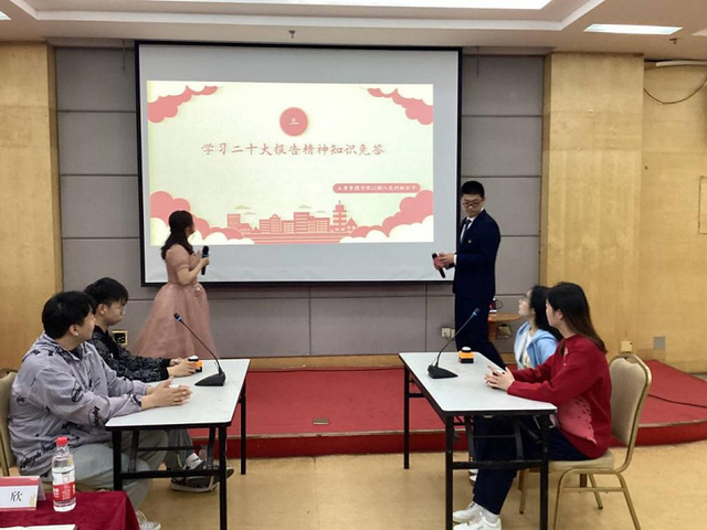 活动下半场,四个员工党支部各派一名选手参加党的二十大精神知识竞答,参赛选手争分夺秒,沉着应答,抢答现场十分激烈,展现了选手们对学习党的二十大精神内容的热情和成效。
