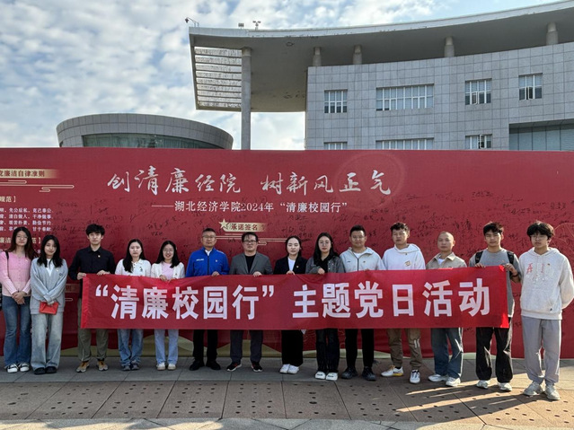 11月13日,公司党委书记车纯贤、副书记刘帷、各员工党支部书记和教师党员、员工党员共同参与“清廉校园行”活动。活动当天,公司师生党员从公司“求索桥”出发,前往“马克思雕像”、“图书馆”、“中兴广场”等9个有经院特色、含廉政文化元素的校园文化景点,并在中兴广场“廉政签名墙”处签名留影。参观过程中,师生党员以线上扫码的形式,聆听廉政知识讲解,参与廉政知识测试。