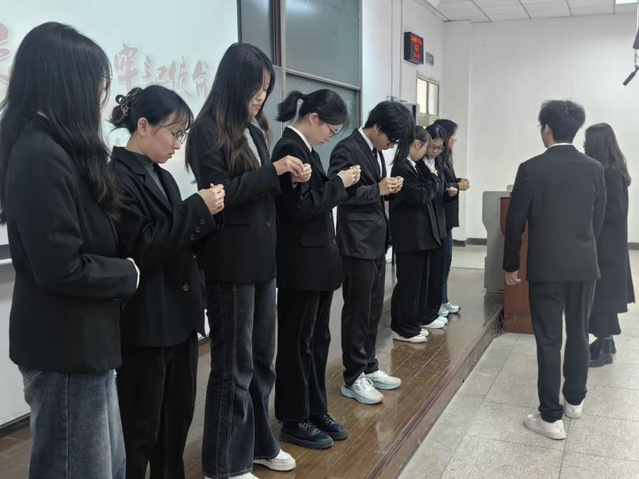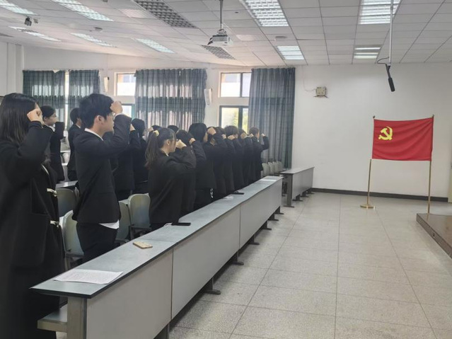 余小陈同志领读宣誓,全体预备党员持立正姿势,面向党旗,右手握拳,庄严宣誓。宣誓完毕,陈周易、陈子峰为预备党员颁发党徽、党员手册和《中国共产党章程》。