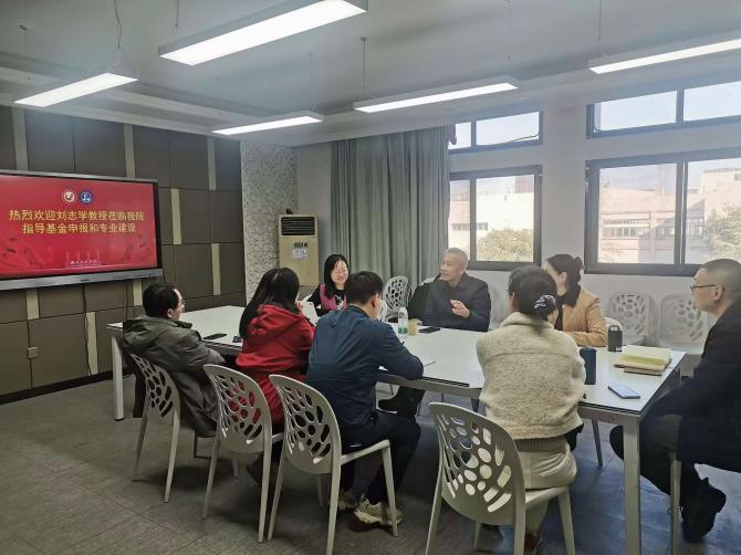 本次会议分为基金申报和专业建设两个方面。首先进行的是基金申报指导,由参会教师将预申报的国家基金项目的有关情况逐一作专题汇报,并向刘志学教授咨询请教目前基金项目申请书撰写过程中碰到的问题和困惑。刘志学教授针对每位教师的预申报项目,从选题、立项依据、研究基础、项目可行性等方面逐一点评,并提出建设性的指导建议。例如,选题要结合地域特点、学科特点;要找到与研究内容相关行业中的头部企业作为研究背景支撑;研究者要有一定研究基础,即要结合已有研究成果;公司内部要有集中统筹部署,避免公司老师选题过于相似的情况等。