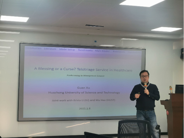 关旭教授的论文《A Blessing or a Curse? Teletriage Service in Healthcare》被国际权威学术期刊《Management Science》正式接收。文章针对远程分诊这一新兴的医疗服务模式展开研究,创新性地刻画了远程分诊服务下医院--患者的交互决策行为,首次揭示了医院的最优远程分诊服务提供策略,并分析了该服务对患者剩余和社会福利的影响机理。此外,文章还进一步探究了医疗定价管制和远程分诊服务费管制等政策工具对远程分诊服务实施效能的调节作用。关旭教授以其深厚的学术造诣,围绕论文展开了讲解。随后,关旭教授分别对每位专任教师的基金申报书进行指导,针对教师们基金写作过程中的共性问题和基金思路逐一梳理。