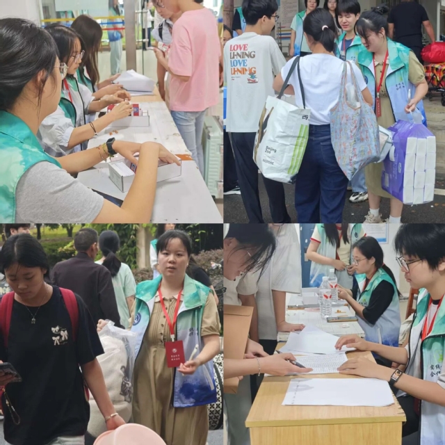 积思河畔,志愿者身着统一服装,在服务点有序开展工作。志愿者严格按照流程核对新生信息,为新生发放校园卡。针对新生提出的专业培养方案、校园基础设施分布、生活服务办理等疑问,志愿者逐一耐心解答。宿舍楼下,志愿者主动协助新生搬运行李,引导至对应宿舍,用细致服务缓解新生初入校园的不便。