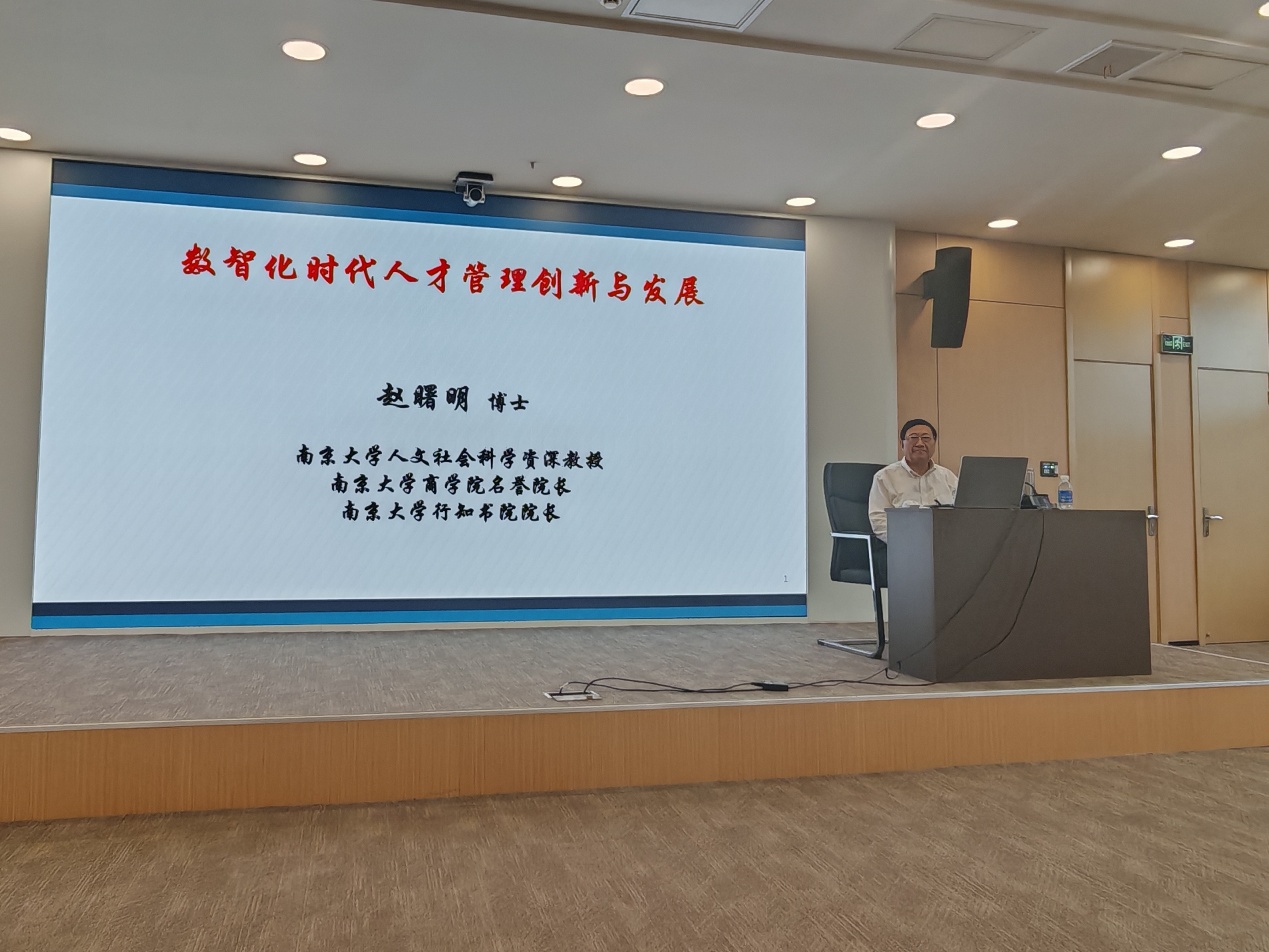 6月22日下午,球速体育人文社会科学资深教授、教育部工商管理类学科专业教育指导委员会副主任赵曙明教授应邀莅临公司,在老员工活动中心6号报告厅为公司师生带来了一场主题为“数智化时代人才人才发展创新与管理”高水平学术讲座。本次活动由副经理钱玲主持,人力资源管理专业全体师生参加了此次讲座。赵曙明教授从彼得·德鲁克的经典管理思想引入,围绕数字经济与数智化人才需求、数智化时代人才管理创新与培养,以及如何推进企业人力资源管理数智化转型这三个方面对数智化时代人才管理前沿议题进行了深入而细致的讲解。他指出,数智化时代,人才是基石。人工智能将在未来10 年间以根本性、革命性的方式改变人类的能力,单一技能专家逐渐淘汰,取而代之的是与AI协作、重新定义问题的人才。大学的核心任务不再是传授具体知识,而是培养驾驭知识与创造意义的能力。在讲座过程中,赵曙明教授不吝分享自身的求学、科研与管理经历,展现出了深厚的专业知识和丰富的实践经验,让在场的老师和同学们都深刻感受到了管理大师的学术积淀与人生智慧。