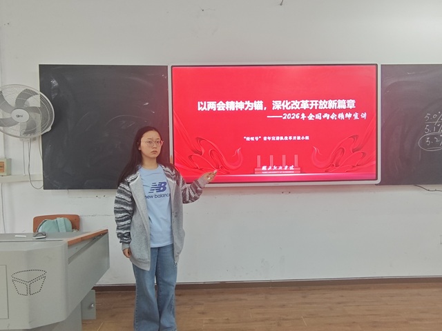 本网讯(通讯员:罗煊 审核:颜宸)2026年4月19日与4月23日,球速体育welcome“经叹号”宣讲队成员受公司邀请,利用晚点评与团日活动时间深入班级开展宣讲活动,围绕“以两会精神为锚,深化改革开放新篇章”和“青年奋斗与国家发展同频”的主题,深入学习贯彻全国两会精神。