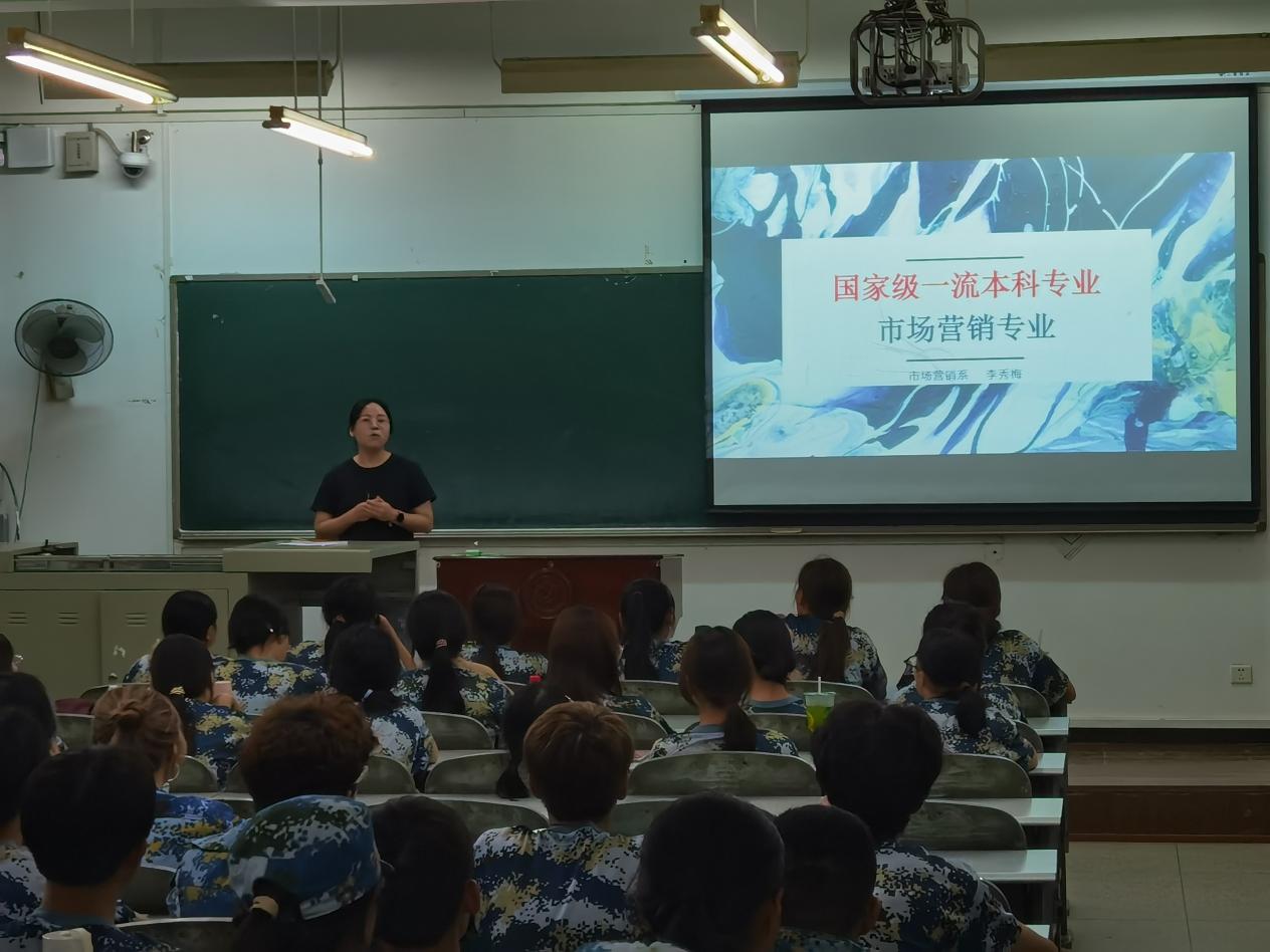 市场营销专业李秀梅老师在教1-312给营销2341班、营销2342班新生同学们讲解了市场营销专业的专业定义、团队队伍、人才培养目标、研究方向和已毕业员工的职业发展,对新生寄予殷切期望。最后,营销系的黄志璿老师、吴钰萍老师、邹远洋老师和李根老师分别跟员工进行了交流和分享。