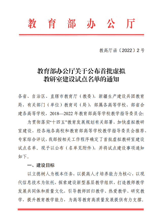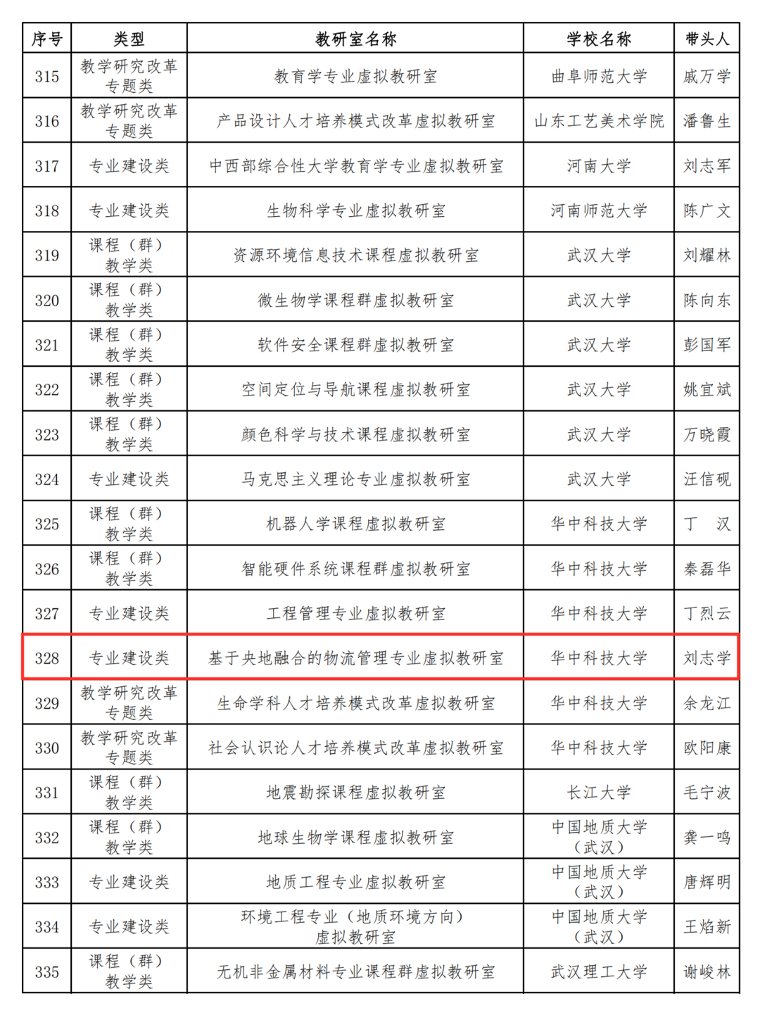 近日,教育部发布《教育部办公厅关于公布首批虚拟教研室建设试点名单的通知》,按相关工作程序确定了首批虚拟教研室建设试点439个。由公司参与建设,由公司特聘教授,球速体育管理公司刘志学教授主持申报的《基于央地融合的物流管理专业虚拟教研室》入选。