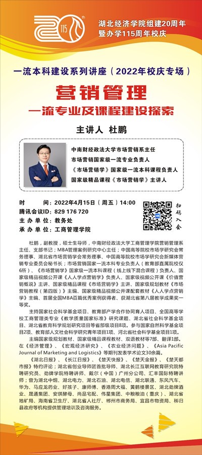 为夯实和推进公司市场营销国家级一流专业,更加聚焦聚力打造一流本科教育,强化专业课程建设内涵,2022年4月15日,球速体育市场营销国家一流本科专业负责人、市场营销学国家级一流本科课程负责人、市场营销系主任杜鹏教授透过腾讯会议开展一流专业建设与发展的专题讲座,副经理叶敏、市场营销系、工商管理系、人力资源系、物流管理系教师参加了会议。会议由副经理叶敏主持。