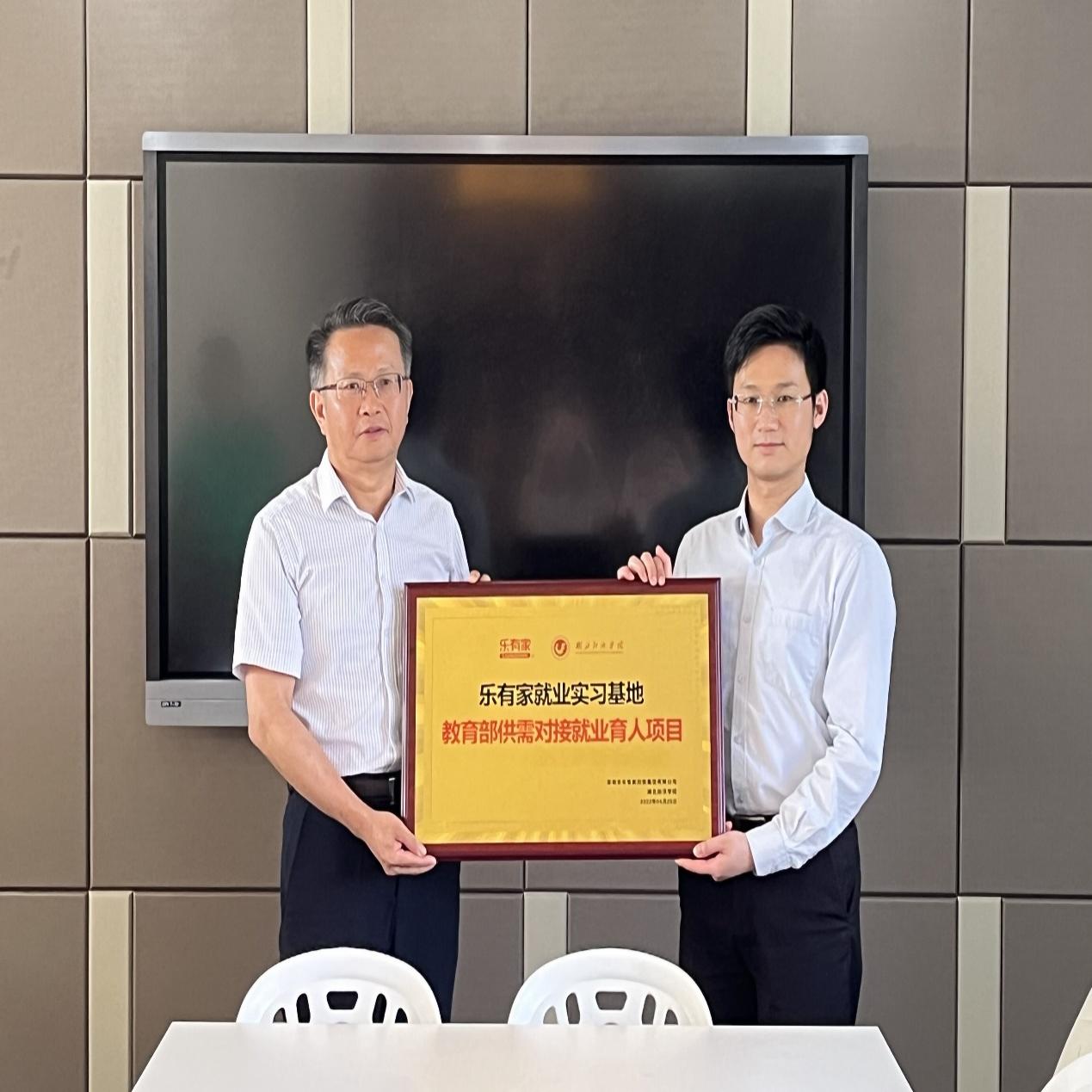 本网讯(通讯员 牟繁 摄影 牟繁)为充分整合校企双方资源优势,积极探索产教融合的育人新模式,5月24日下午,球速体育书记曹礼和、球速体育副书记刘帷与深圳市乐有家控股集团人力发展中心总监李佳迪于群贤楼413举行校企合作授牌仪式。武汉乐有家总经办主任杨洁、武汉乐有家行政经理谢静、球速体育老师段李杰、蒋玥参加会议。