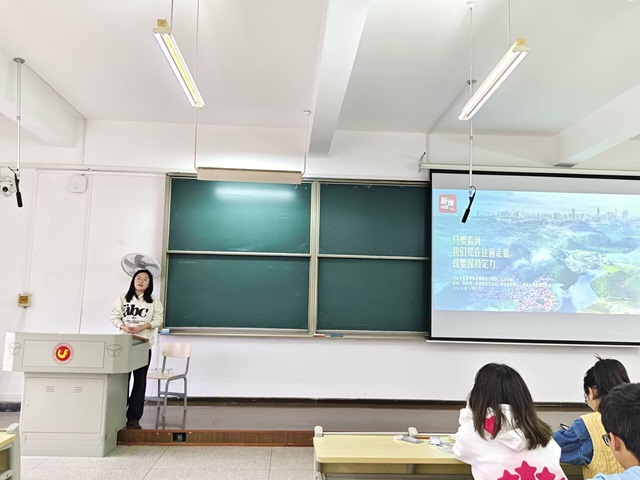 本网讯(通讯员:薛俊泽、喻亚琴 拍摄:邵晶晶 审核:刘帷)3月24日晚,公司在J2-401开展学习贯彻全国两会精神宣讲会。“经叹号”宣讲队成员程茹同学作题为《以新质生产力推进中国式现代化》的理论宣讲。辅导员颜宸、喻亚琴,186名员工代表参加学习。