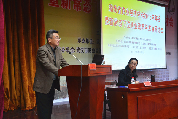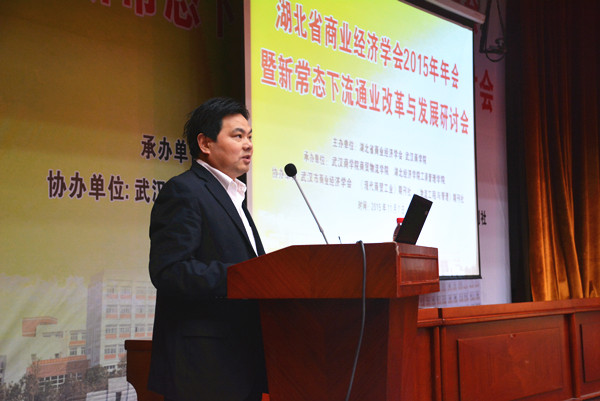 湖北省商务厅副厅长胡道银同志在主题发言后作了重要讲话,他感谢学会为湖北商贸发展所给予的理论研究和智力支撑,认为学会在一年前就将新常态下流通业改革与发展作为研究主题具有前瞻性。同时指出商贸流通业在新常态下是新引擎、新动力、新平台、新领域、新载体,其功能地位显著提高,而湖北的内贸在全国的地位是举足轻重的,贡献很大。期望与会专家学者能继续为湖北流通业发展献计献策,共同研究,共谋湖北商贸流通业发展的大计。